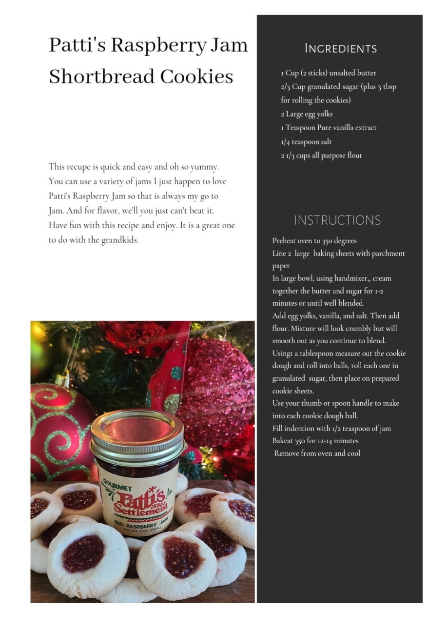 So as you may have guessed by now, todays recipe is Patti’s Raspberry Jam shortbread cookies. Better known as thumb cookies.